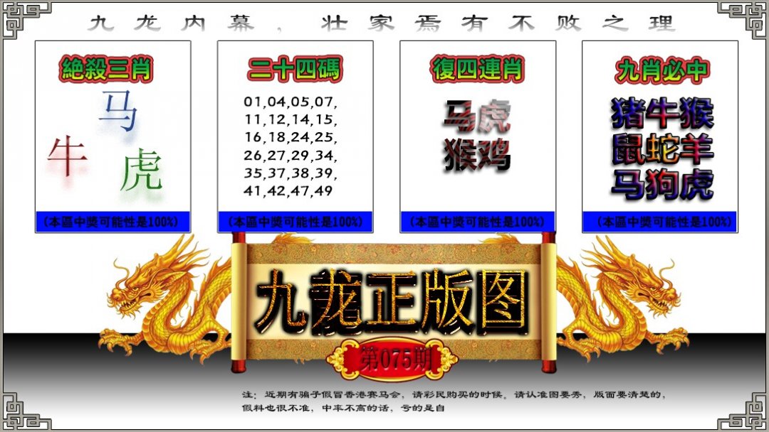 075期金牌①肖【龙】开:0准 |