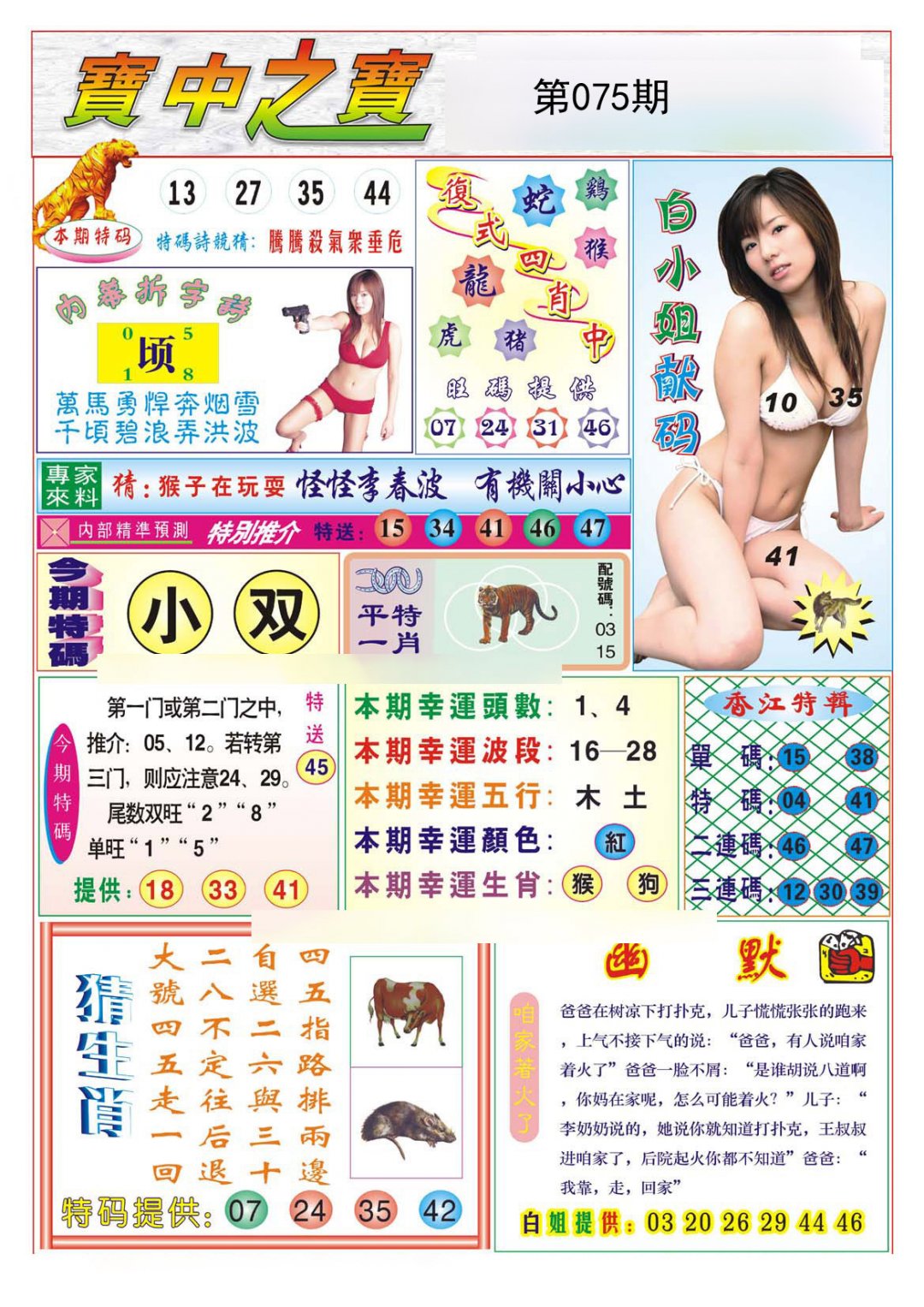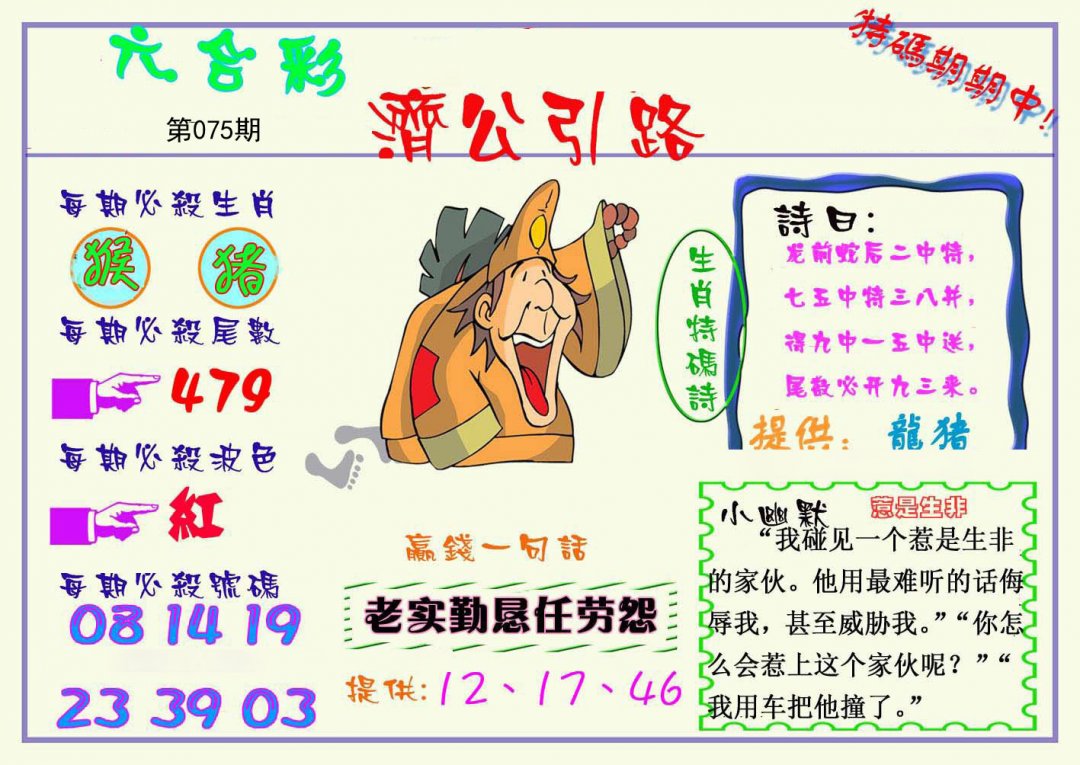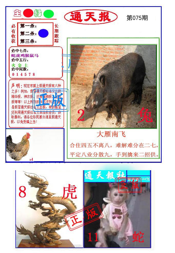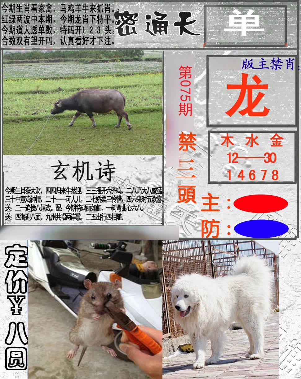| 075期:【单数+狗虎马鼠】开:?00准 |